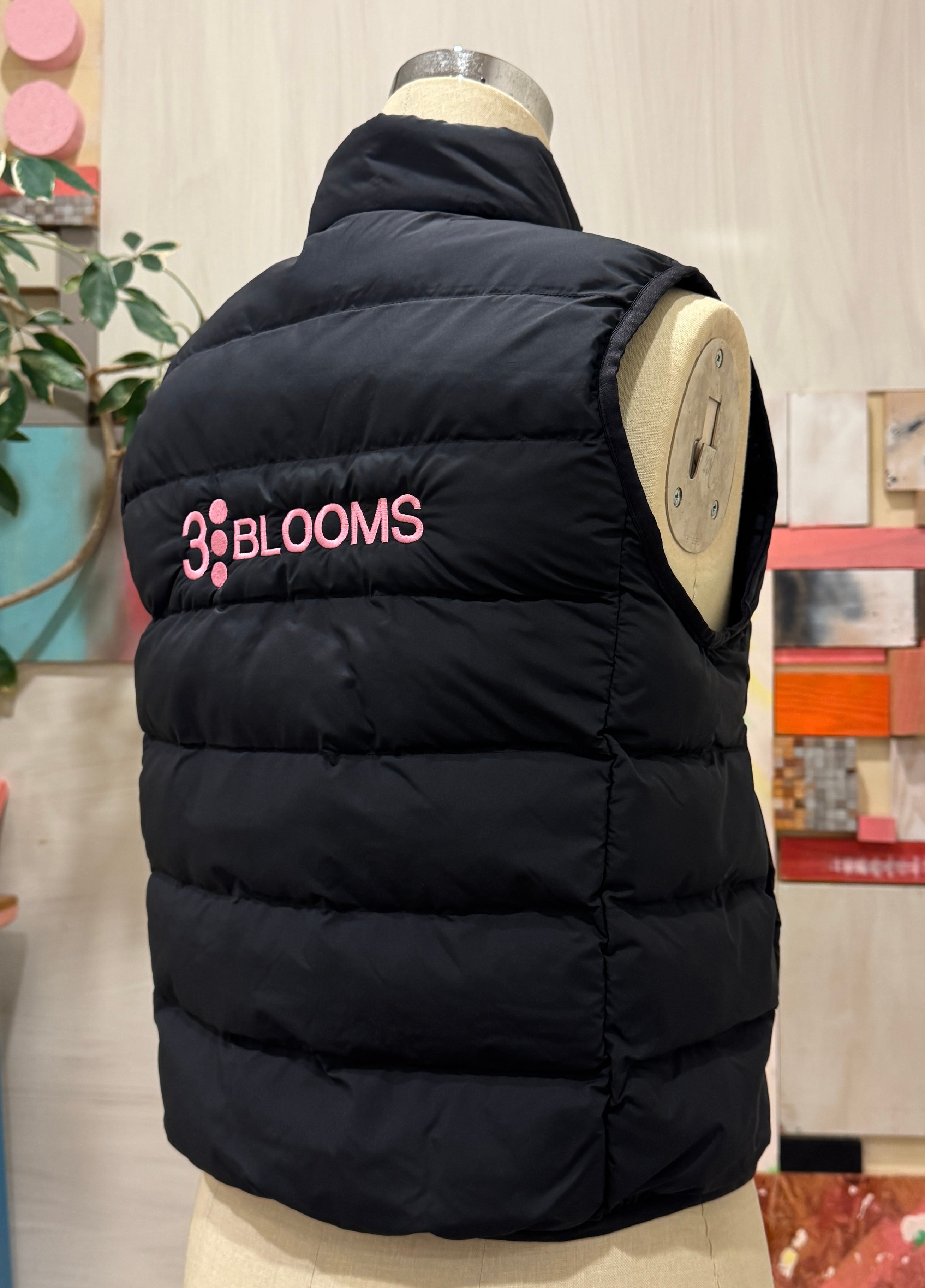「3BLOOMS」をピンク色の刺繍を入れました。